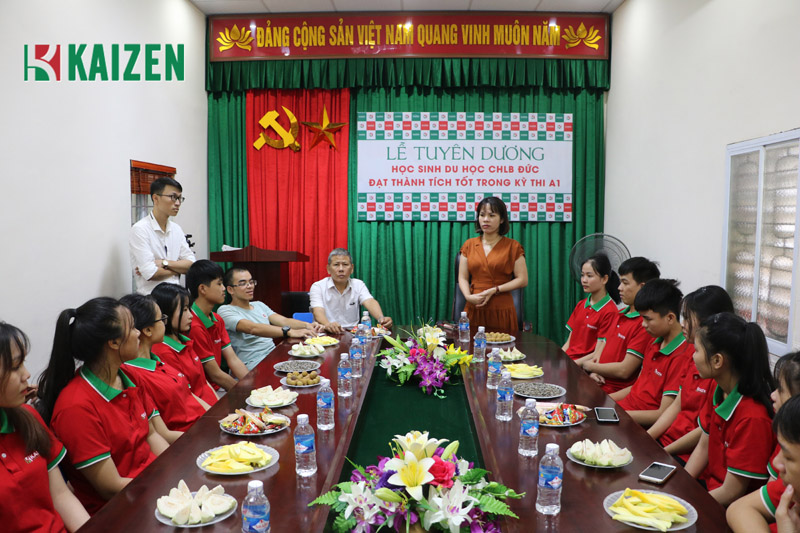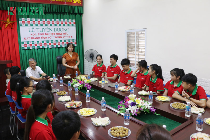 Phát biểu tại buổi lễ, Bà Trịnh Thị Huyên – Chủ tịch Hội Đồng Quản Trị, kiêm tổng Giám đốc công ty Kaizen đã biểu dương, ghi nhận sự nỗ lực, cố gắng của giáo viên và học sinh trong công tác dạy và học trong thời gian qua. Bà cũng hy vọng trong thời gian tới sẽ có nhiều bạn du học sinh Đức của công ty đạt được những thành tích cao hơn trong các kỳ thi A1, A2 và B1.