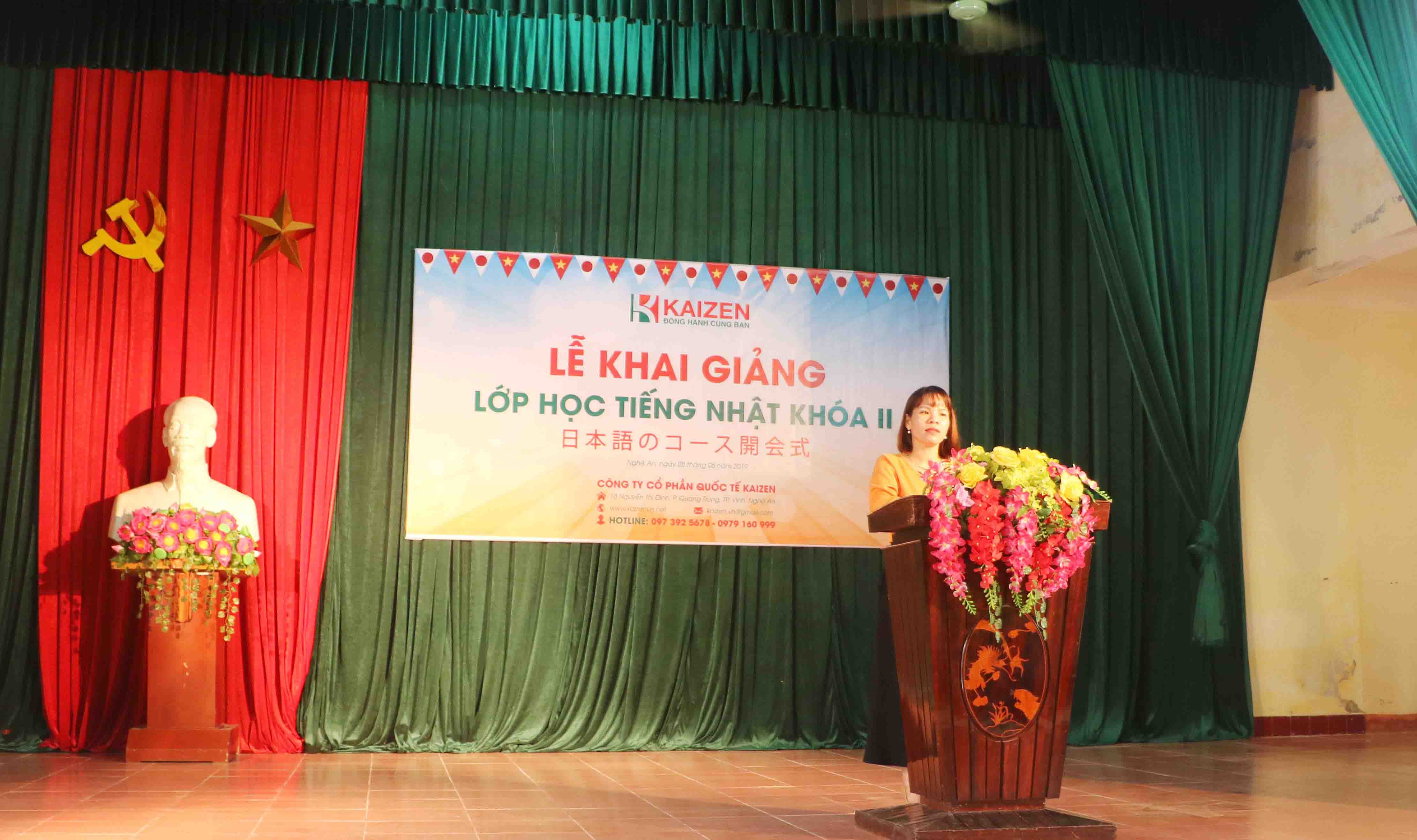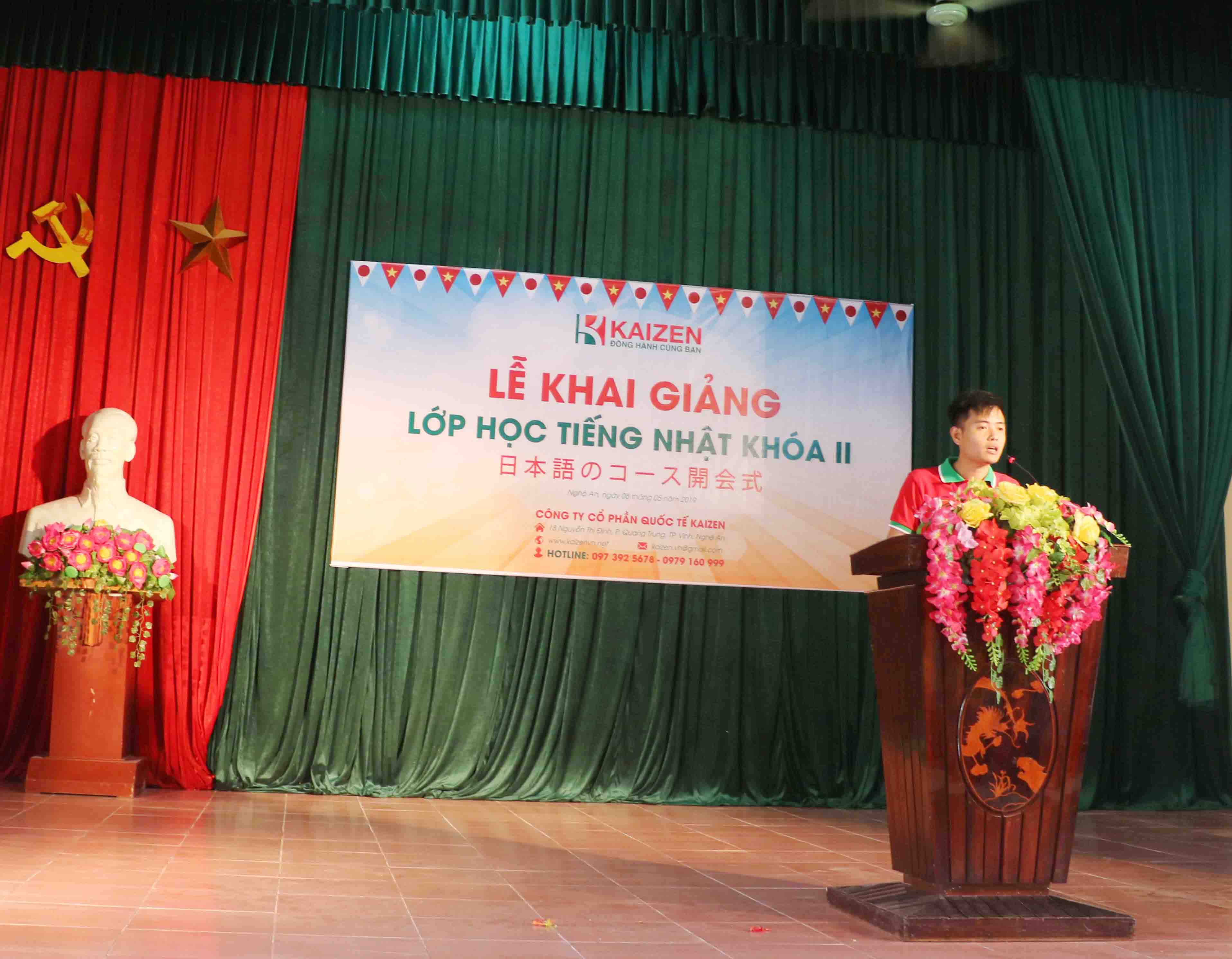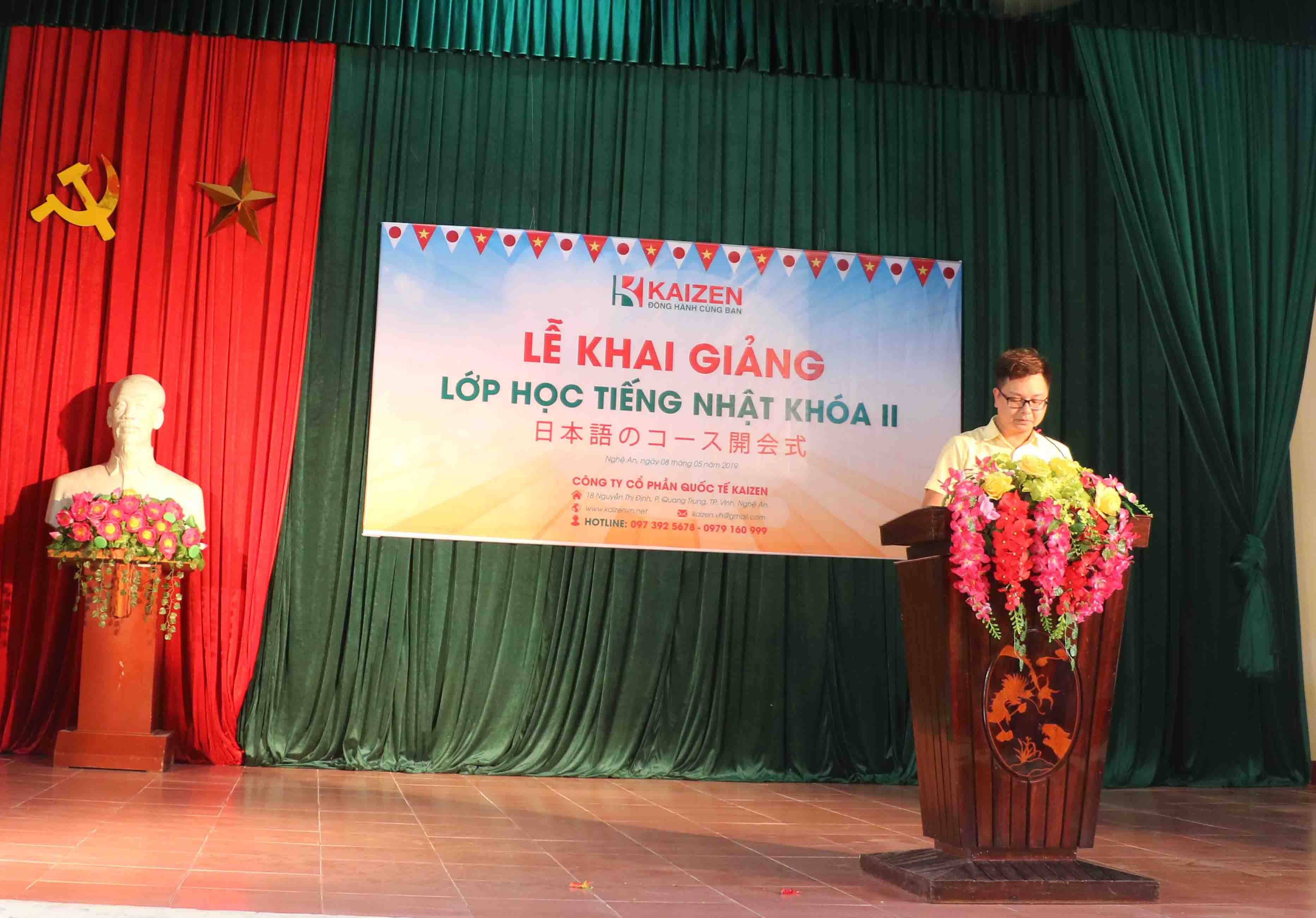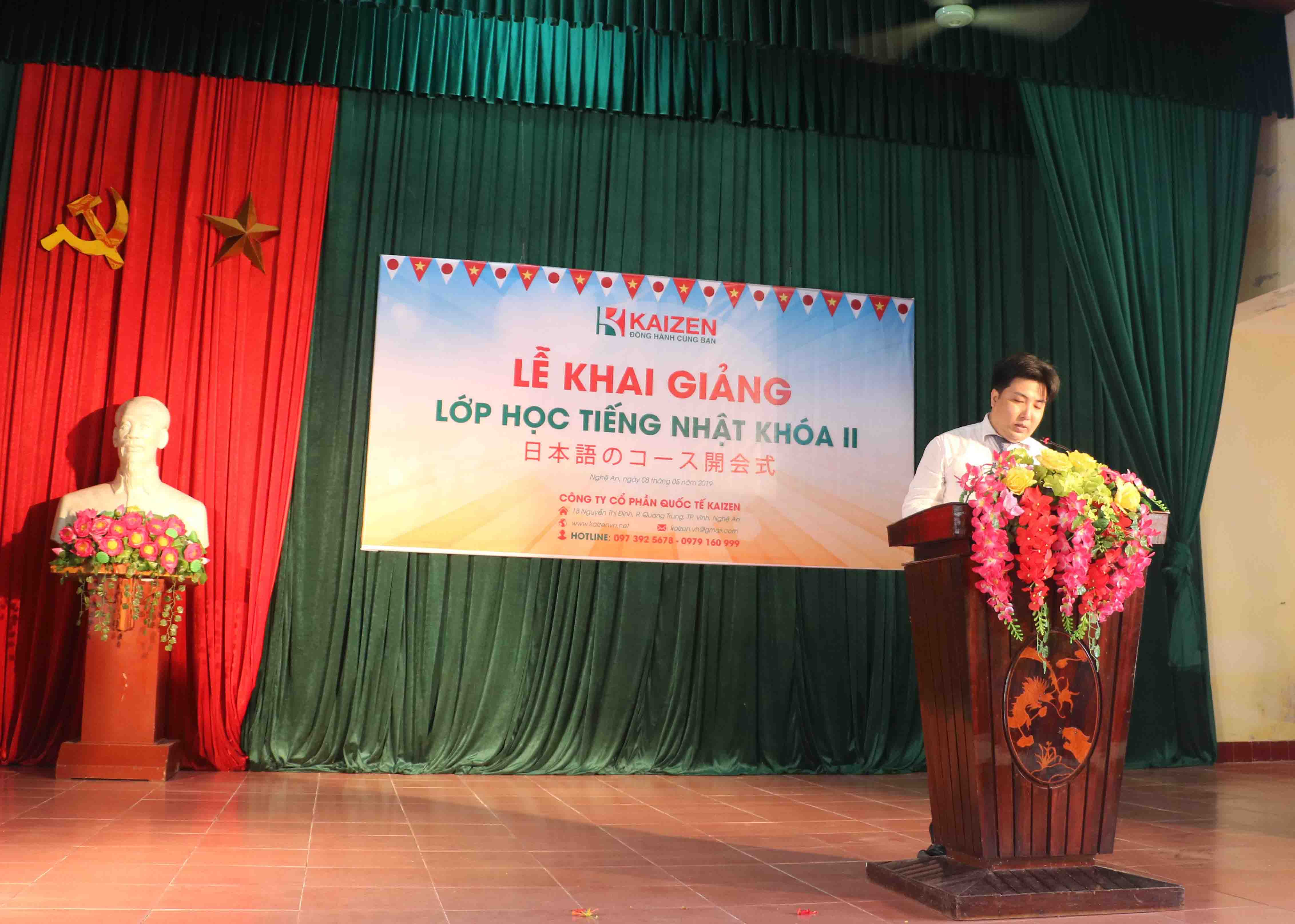 Sau buổi lễ khai giảng, các bạn học viên lớp tiếng Nhật khóa II sẽ bắt đầu học tiếng Nhật, giáo dục định hướng cũng như phong cách làm việc, văn hóa, ứng xử của đất nước mặt trời mọc. Vì vậy, công ty Kaizen mong các bạn hãy nỗ lực học tập thật tốt để làm hành trang cho tương lai của mình. Phía công ty cũng sẽ cố gắng mở thêm những lớp đào tạo tiếng Nhật để hỗ trợ cũng như đáp ứng nhu cầu ngày càng lớn của người lao động trong và ngoài tỉnh Nghệ An.