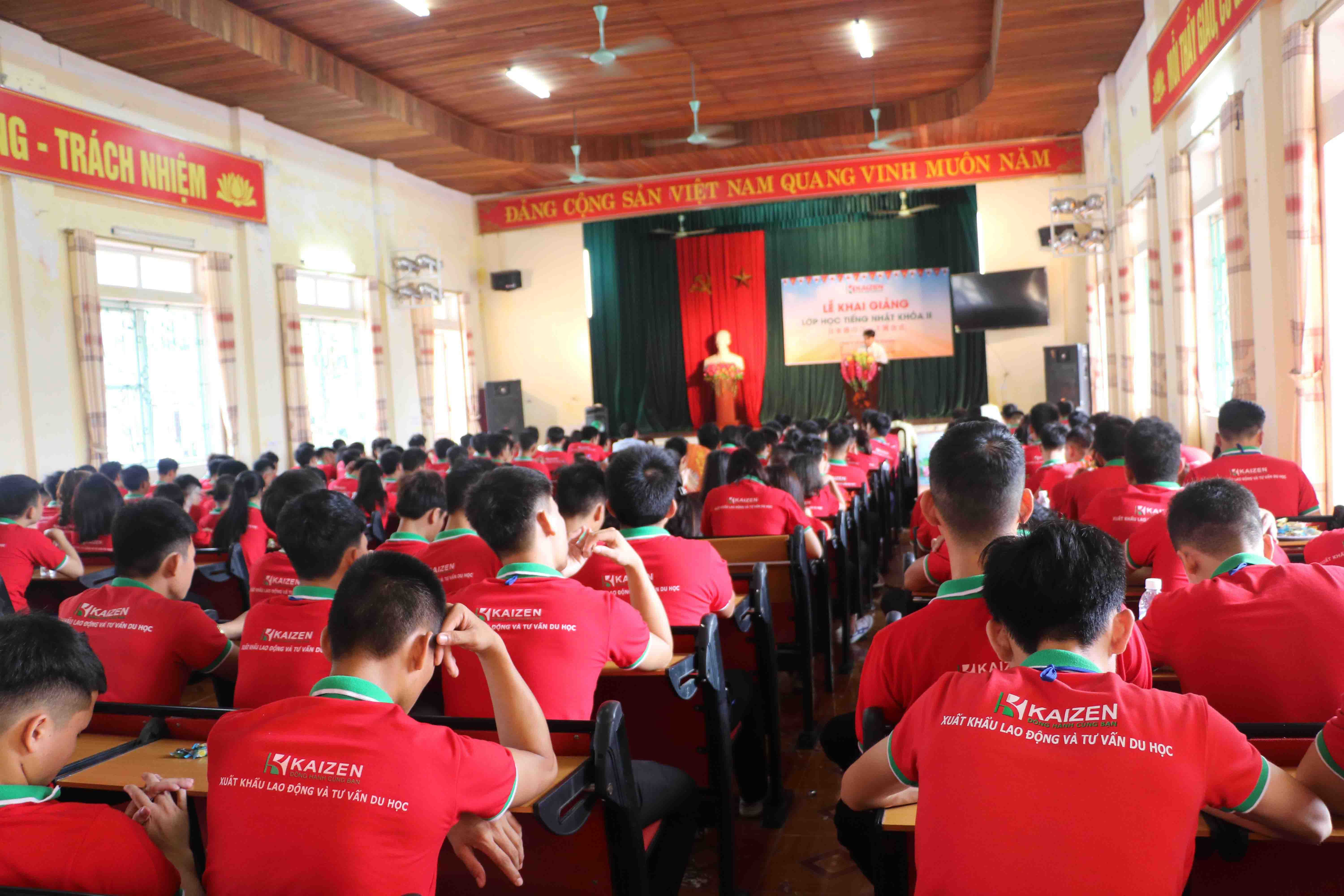 Để trang bị cho các em học sinh có được trình độ cơ bản về tiếng Nhật phục vụ việc giao tiếp, sinh hoạt trong thời gian làm việc tại Nhật Bản, sáng ngày 08/05/2019, Công ty CP Quốc tế Kaizen trang trọng tổ chức buổi lễ "Khai giảng lớp học tiếng Nhật khóa II". Buổi lễ có sự tham gia của Ban lãnh đạo công ty và hơn 200 học viên đã đậu đơn hàng XKLĐ tại Nhật Bản.
