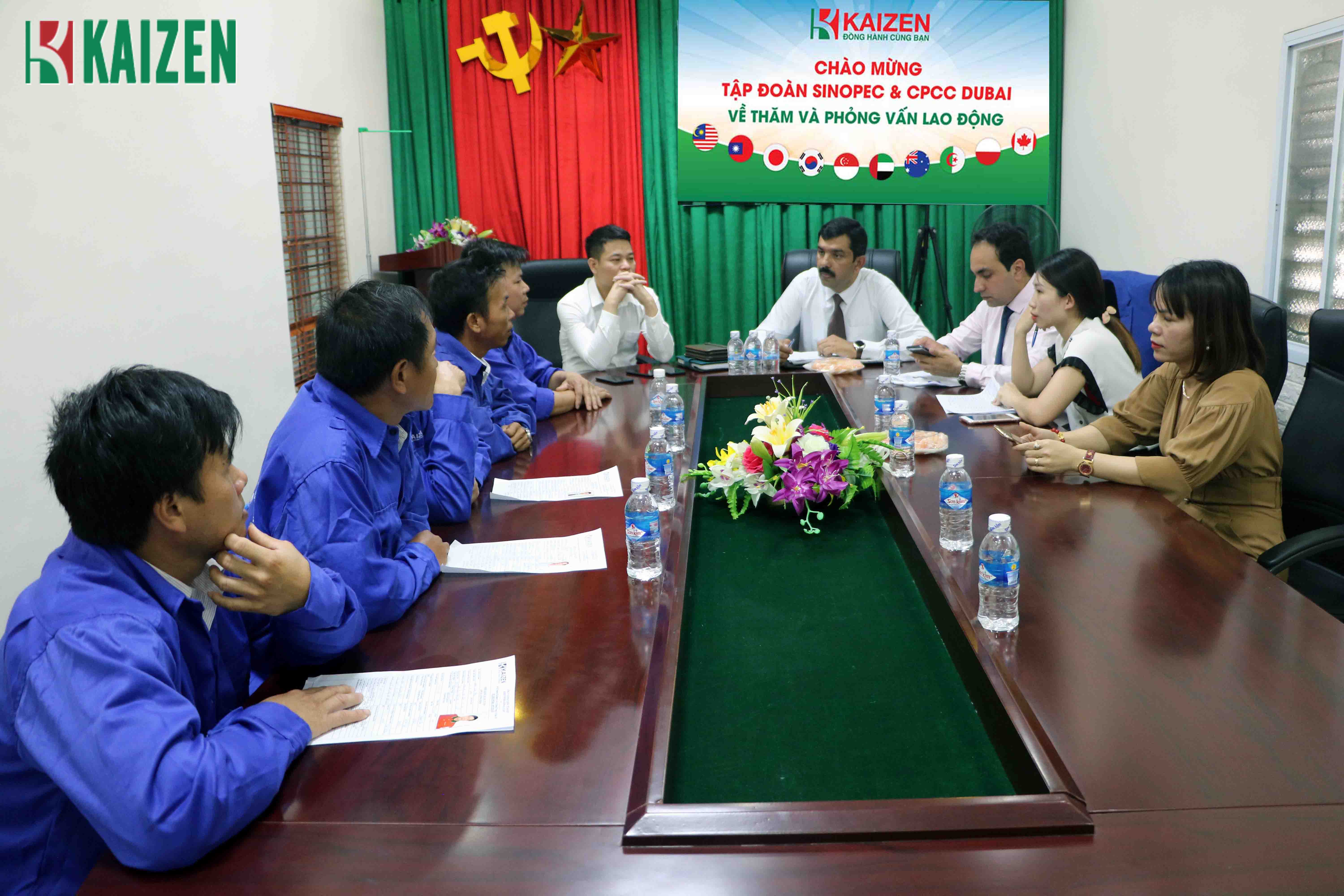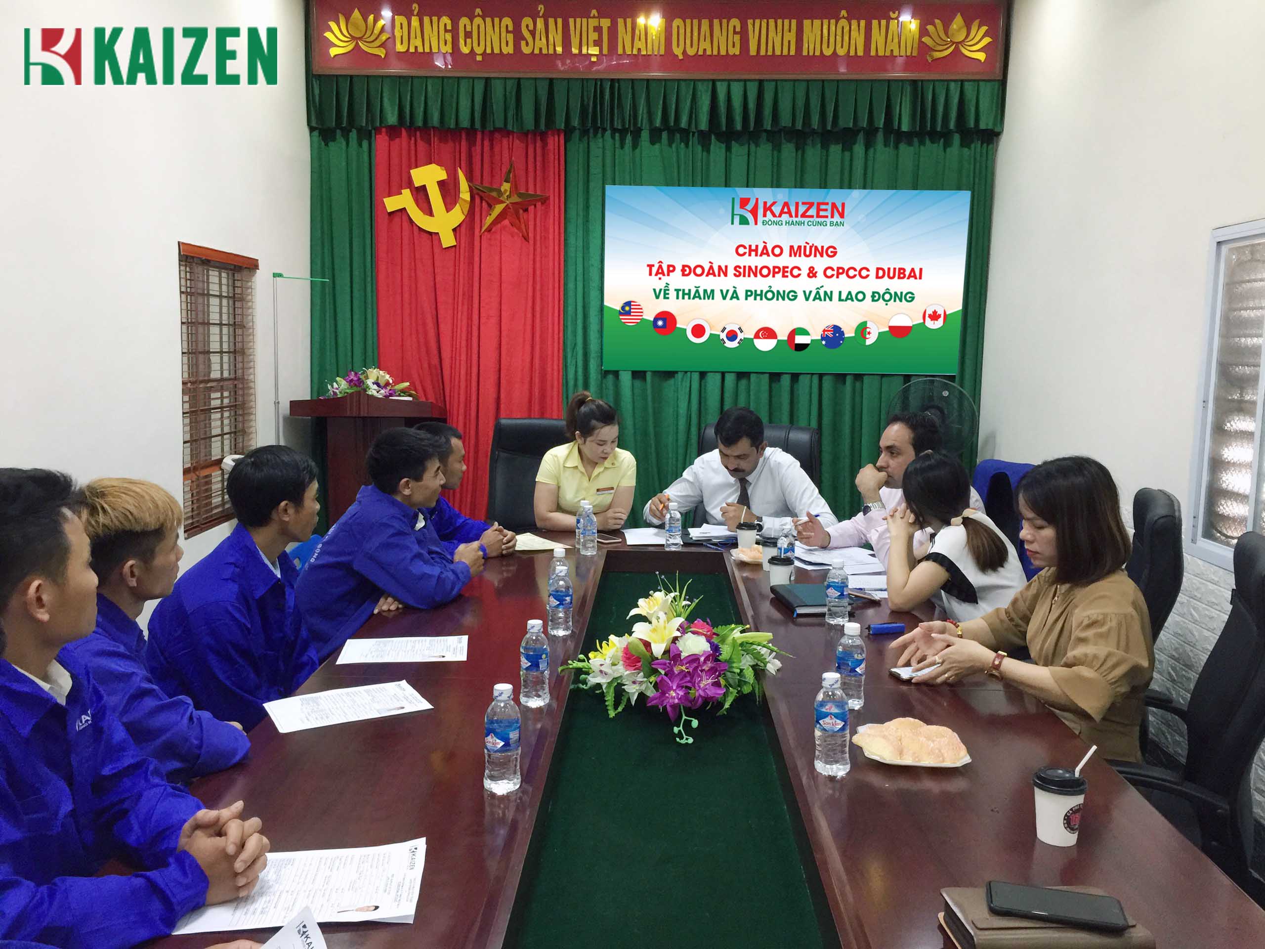 Sau khi trao đổi một số thông tin với người lao động. Đại diện Tập đoàn SINOPEC & CPCC bước vào phòng để phỏng vấn các ứng viên. Lần lượt 5 ứng viên được gọi vào phòng thi tuyển. Mỗi ứng viên sẽ lần lượt trả lời các câu hỏi của đại diện Tập đoàn SINOPEC & CPCC. Tuy các câu hỏi không quá khó nhưng tập trung sâu vào kinh nghiệm làm việc của người lao động. Do đó, nếu không thực sự nắm chắc các kiến thức chuyên môn thì nhiều người sẽ không trả lời được. Tuy nhiên, các lao động của Kaizen đều là những người có kinh nghiệm và được đào tạo kỹ càng trước khi thi tuyển nên đều rất tự tin khi trả lời câu hỏi.