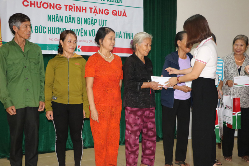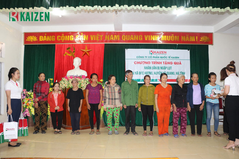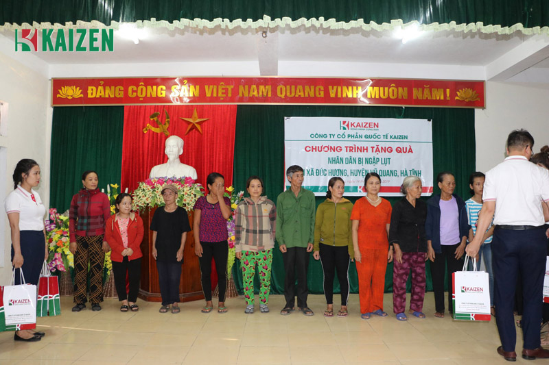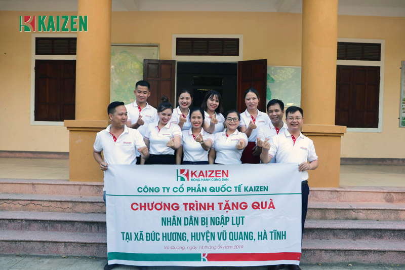 Ngày 14 tháng 09 năm 2019, nhiều phần quà có ý nghĩa của Công ty cổ phần Quốc tế Kaizen đã được trao tận tay đồng bào lũ lụt tại xã Đức Hương, huyện Vũ Quang, tỉnh Hà Tĩnh, một trong những vùng bị thiệt hại nặng nề trong đợt mưa lũ vừa qua.
