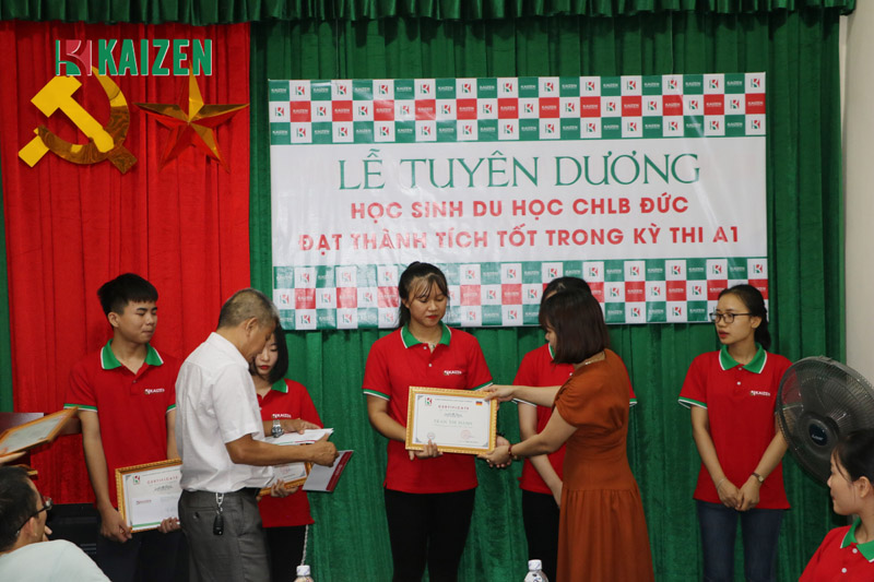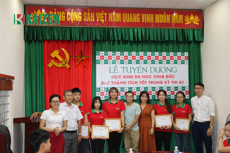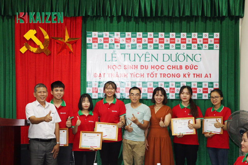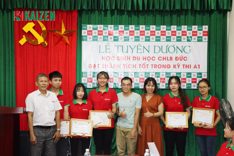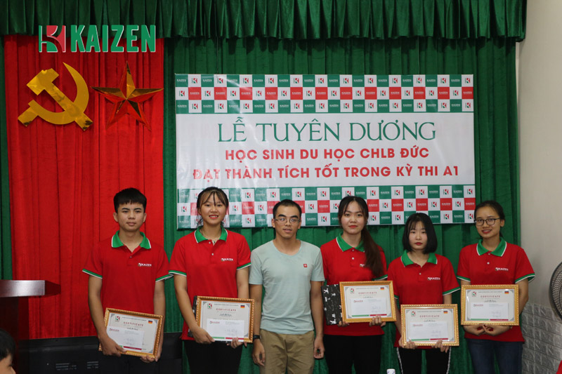 Nhằm nâng cao chất lượng đào tạo, trong thời gian vừa qua công ty Kaizen đã thực hiện đồng bộ các giải pháp hoàn thiện giáo trình giảng dạy cũng như tổ chức nhiều hoạt động ngoại khóa để các bạn học sinh vừa nắm vững kiến thức lý thuyết vừa có thể nghe nói tiếng Đức thành thạo. Nhờ sự tận tâm của Ban lãnh đạo công ty, giáo viên giảng dạy cùng sự nỗ lực kiên trì của các bạn học sinh mà trong kỳ thi tiếng Đức A1 vừa qua đã có 5 bạn du học sinh đạt thành tích cao. Đó là các bạn: Nguyễn Vinh Tú, Nguyễn Thị Sắc, Vũ Đức Tuấn, Nguyễn Thị Kiều, Trần Thị Hạnh. Trong đó bạn Nguyễn Vinh Tú chính là người đạt được số điểm cao nhất với 89 điểm.