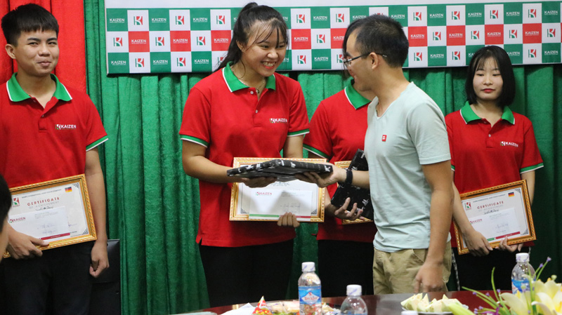 Nhân dịp này, Công ty Kaizen cũng đã trao 5 phần quà và giấy khen để khen thưởng cho 5 bạn du học sinh đã có thành tích xuất sắc trong kỳ thi A1 vừa rồi. Công ty Kaizen mong rằng trong thời gian tới các bạn Du học sinh Đức sẽ hoàn thành xuất sắc khóa học để có thể hoàn thành ước mơ du học Đức của mình.