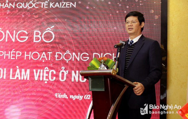 Ngày 2/2, tại TP.Vinh đã diễn ra lễ công bố, trao giấy phép hoạt động dịch vụ đưa người lao động đi làm việc nước ngoài cho Công ty cổ phần quốc tế Kaizen.