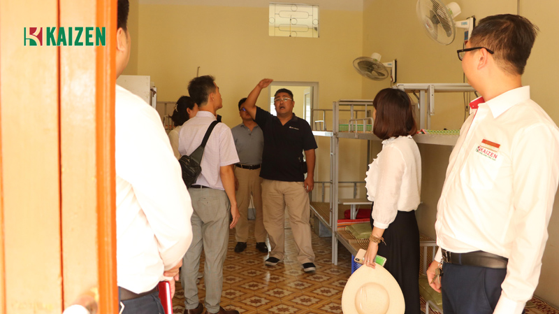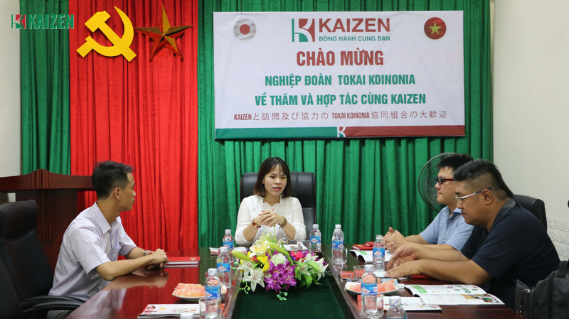 Đón tiếp nghiệp đoàn gồm có bà Trịnh Thị Huyên – Chủ tịch hội đồng quản trị Kiêm TGĐ công ty cùng toàn thể cán bộ nhân viên Công ty CPQT Kaizen. Trong thời gian đến thăm công ty nghiệp đoàn Tokai Koinonia đã dành thời gian để thăm quan cơ sở hạ tầng cũng như Trung tâm đào tạo của Kaizen. Nghiệp đoàn Tokai Koinonia cho biết họ rất chú trọng vào việc đào tạo con người vì chất lượng thực tập sinh là nguồn gốc thành công của công ty trong tương lai. Có lực lượng thực tập sinh đông đảo với chất lượng tay nghề tốt sẽ là điều cốt lõi cho sự phát triển bền vững của công ty.
