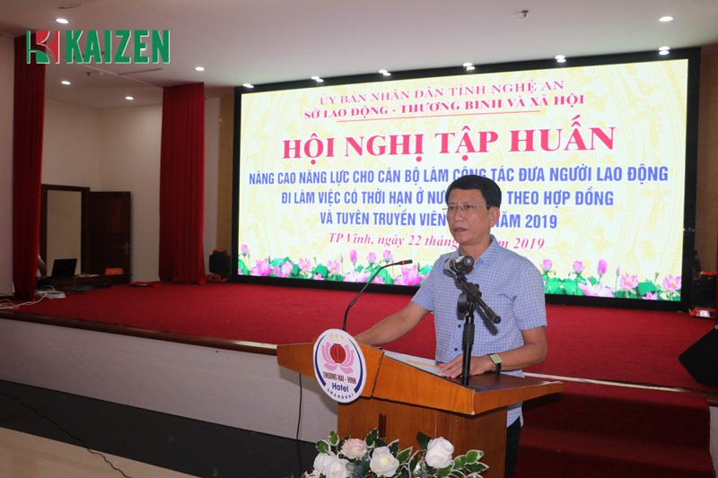 Tham dự hội nghị có đồng chí Vi Ngọc Quỳnh - Phó Giám đốc Sở Lao động TB&XH tỉnh Nghệ An, đồng chí Trần Phi Hùng Trưởng phòng LĐ việc làm tỉnh Nghệ An, ban chuyên môn Sở. Về phía công ty Kaizen có bà Trịnh Thị Huyên – Chủ tịch hội đồng quản trị kiêm Tổng Giám đốc công ty CPQT KaiZen…
